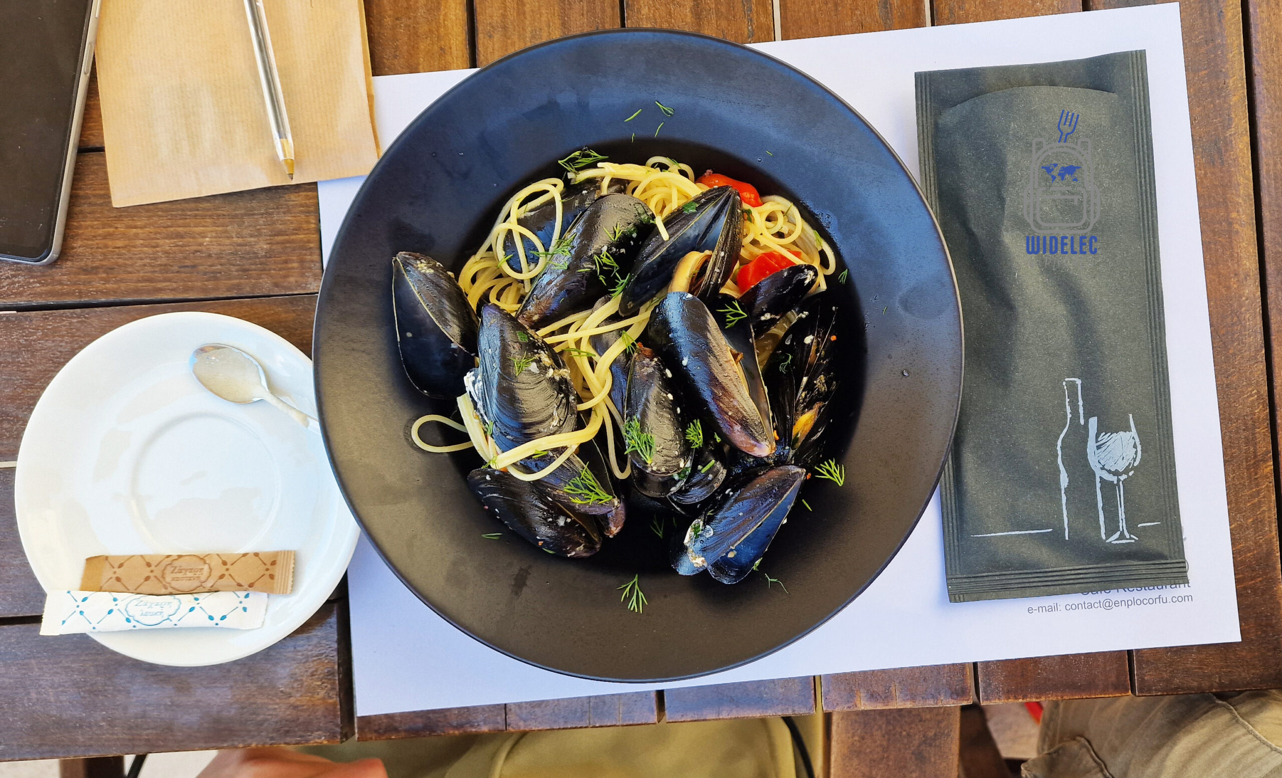 Kuchnia na Korfu to mieszanka greckiej, ale też ze względu na długoletnie włoskie wpływy, włoskiej kuchni. Oczywiście można zjeść dobrego gyrosa czy musakę, ale równie często można trafić na pizzę czy makaron we włoskim stylu.