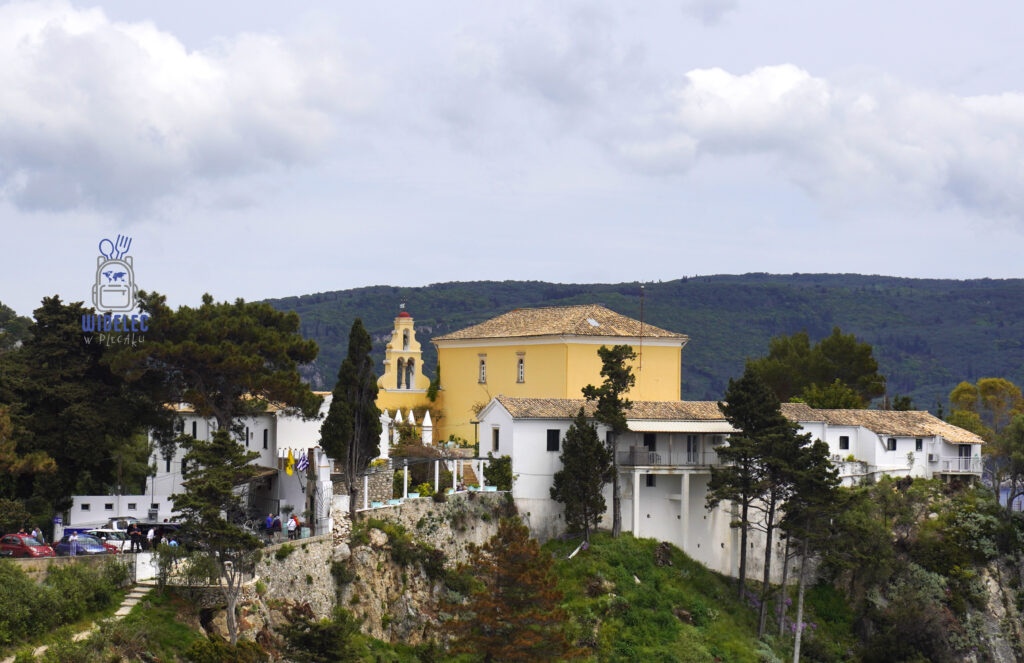 -Pantokrator, najwyższy szczyt Korfu – 906 m n.p.m, i monastyr, widok aż po horyzont