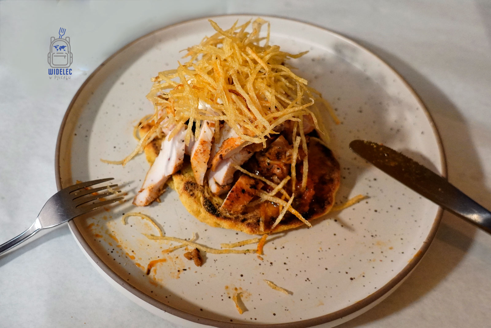 - z pomidorem, cebulą i kilkoma frytkami (tak – to lokalny klasyk!)